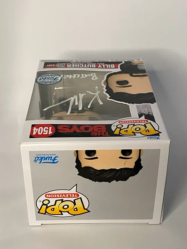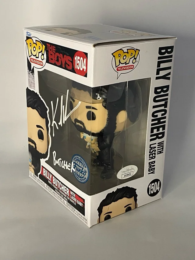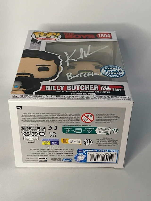 Funko Pop Funko Billy Butcher #1504 Special Edition firmado por Karl Urban, con certificado de autenticidad de JSA. En perfecto estado. La firma se obtuvo en la MCM Comic Con London en octubre de 2025. Se envía con funda protectora y muy protegido.