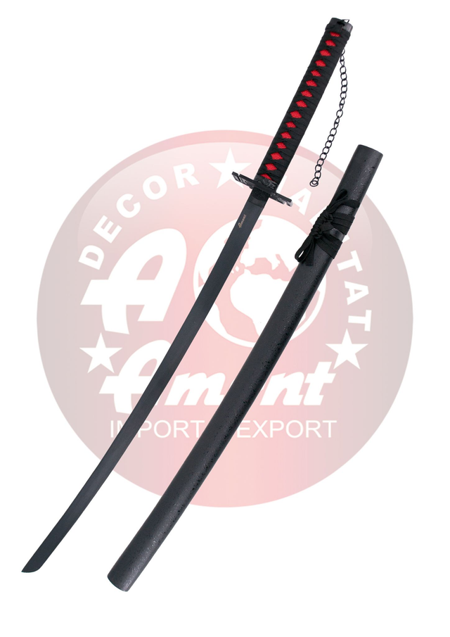 Katana S5013 Tensa Zagetsu Ichigo Kurosaki de Bleach réplica no oficial de 102 cm hoja de acero negra, vaina negra, mango encordado negro. Ref. S5013