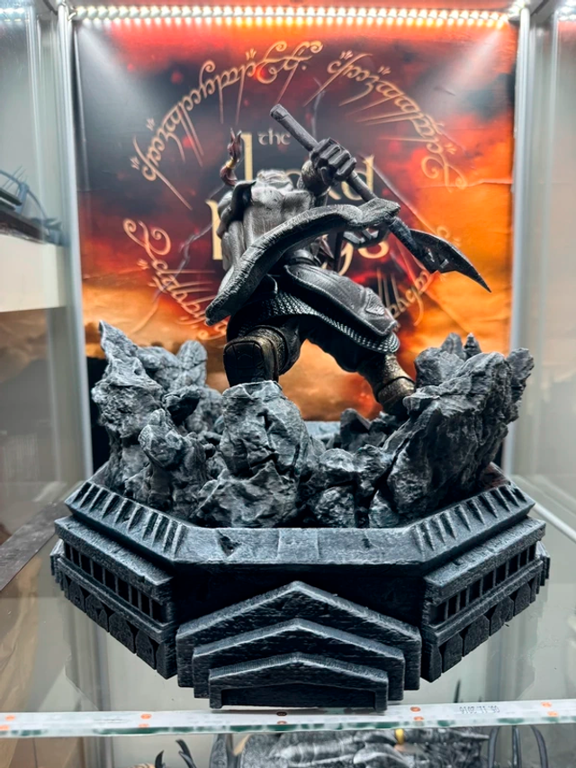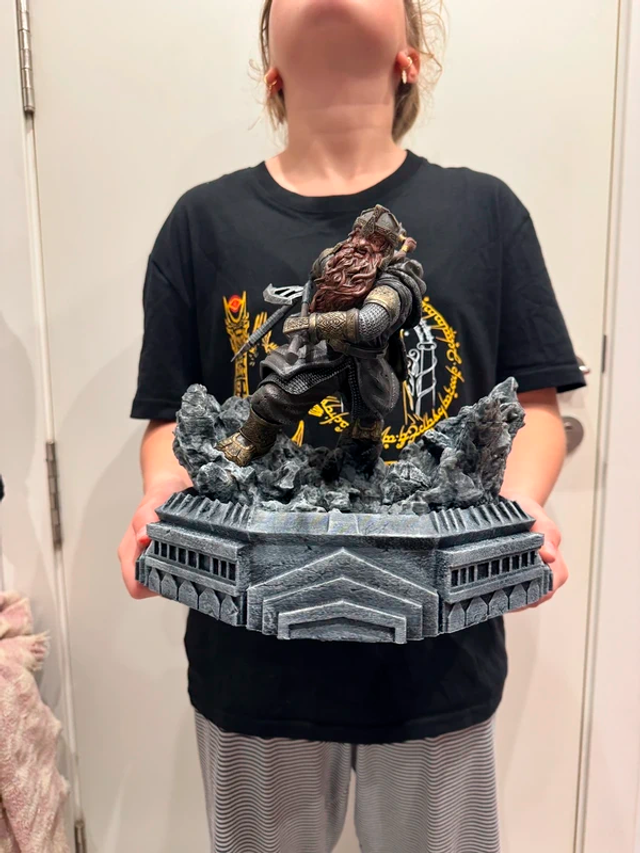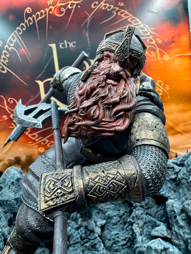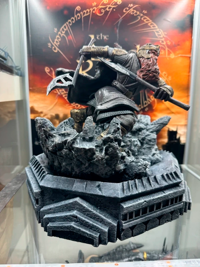 Diorama de Gimli de El Señor De Los Anillos Fabricado en resina y pintado a mano y aerógrafo. Altura 21cm.
