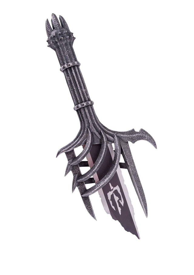 Espada rota de Sauron S6063 del señor de los anillos los anillos del poder, réplica no oficial de 40 cm con hoja de acero acabada en gris con el filo en satinado. La guarda y el pomo guarda y mango son metálicos acabados en níquel antiguo, con peana para colgar con el símbolo de Sauron. Ref. S6063