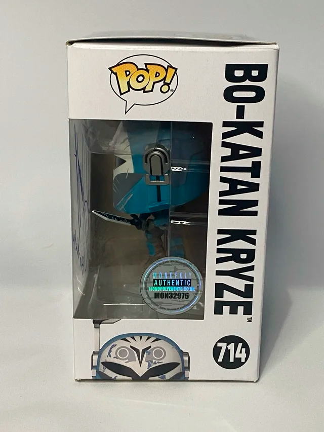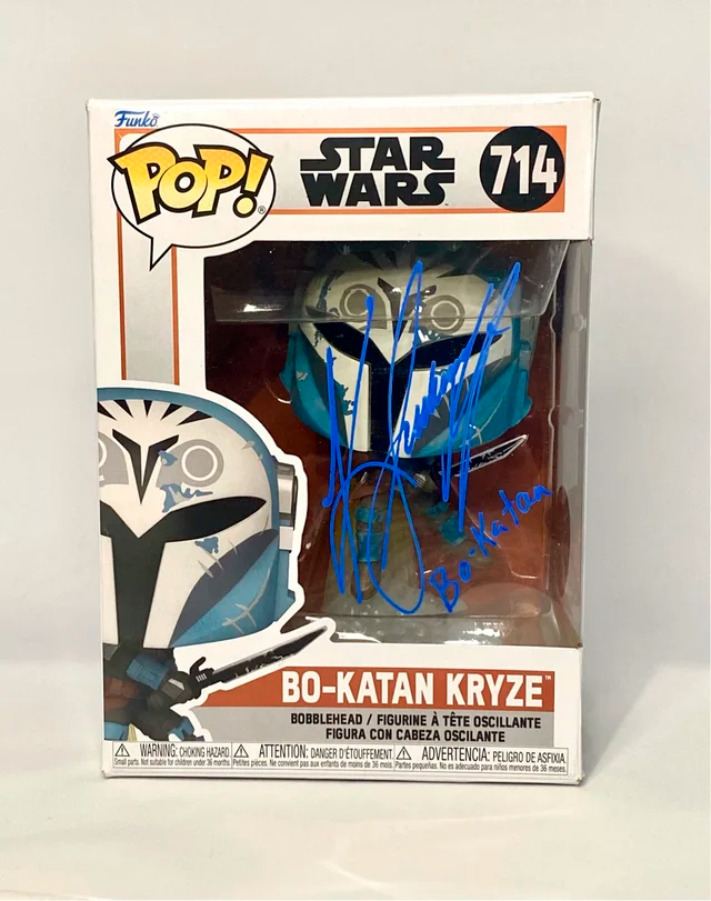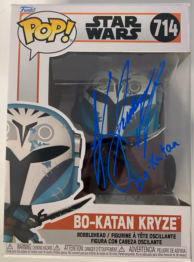 Funko Pop Bo-Katan Kryze #714 - Star wars firmado por Katee Sackoff, con certificado de autenticidad de Monopoly Events. La firma se obtuvo en la Comic Con de Liverpool organizada por Monopoly Events en noviembre de 2025. En perfecto estado, se envía con funda protectora y muy protegido.