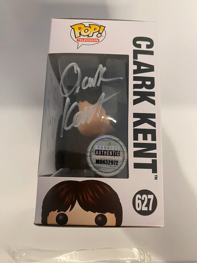 Funko Pop Clark Kent #627 - Smallville firmado por Tom Welling, con certificado de autenticidad de Monopoly Events. La firma se obtuvo en la Comic Con de Liverpool organizada por Monopoly Events en noviembre de 2025. En perfecto estado, se envía con funda protectora y muy protegido.