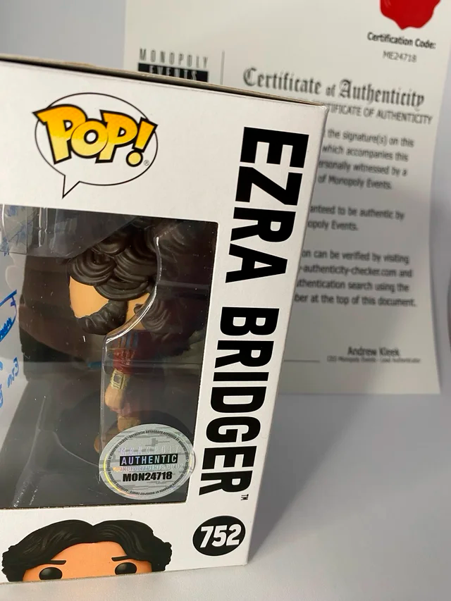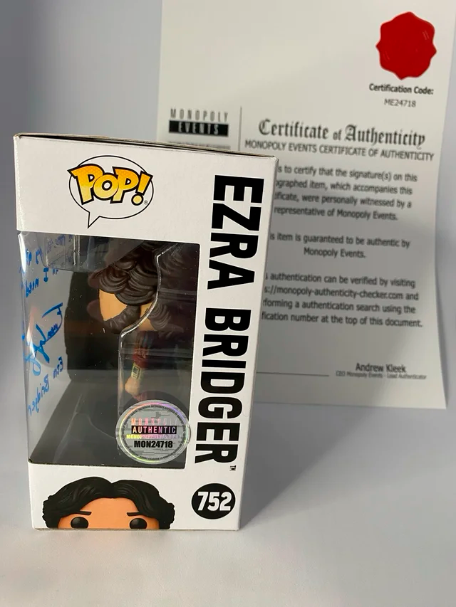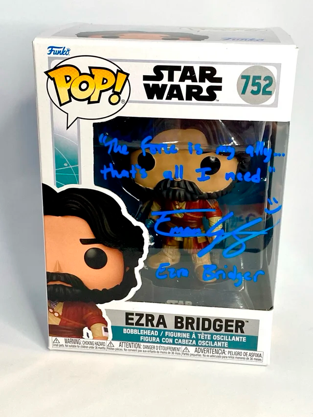 Funko Pop Ezra Bridger #752 - Star wars Ahsoka firmado por Eman Esfandi, con certificado de autenticidad de Monopoly Events. Eman Esfandi escribió: “The Force is my ally. That's all I need.”. La firma se obtuvo en la Comic Con de Liverpool organizada por Monopoly Events en mayo de 2025. En perfecto estado, se envía con funda protectora y muy protegido.