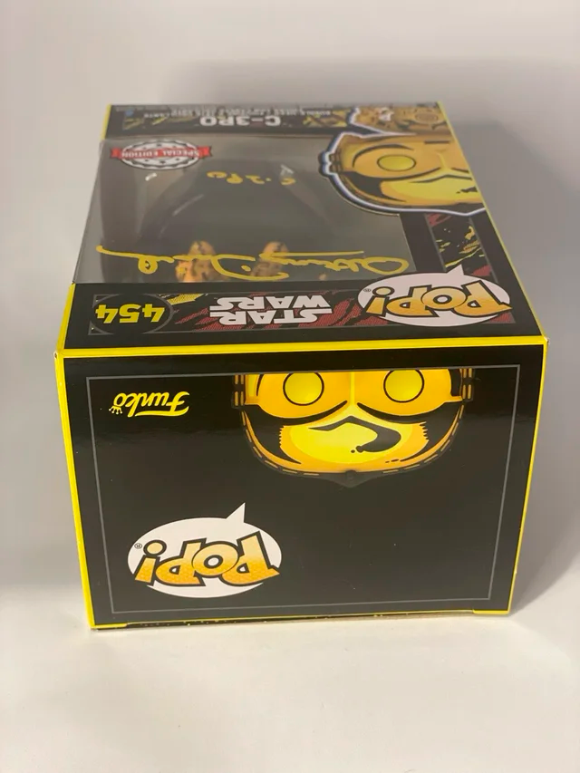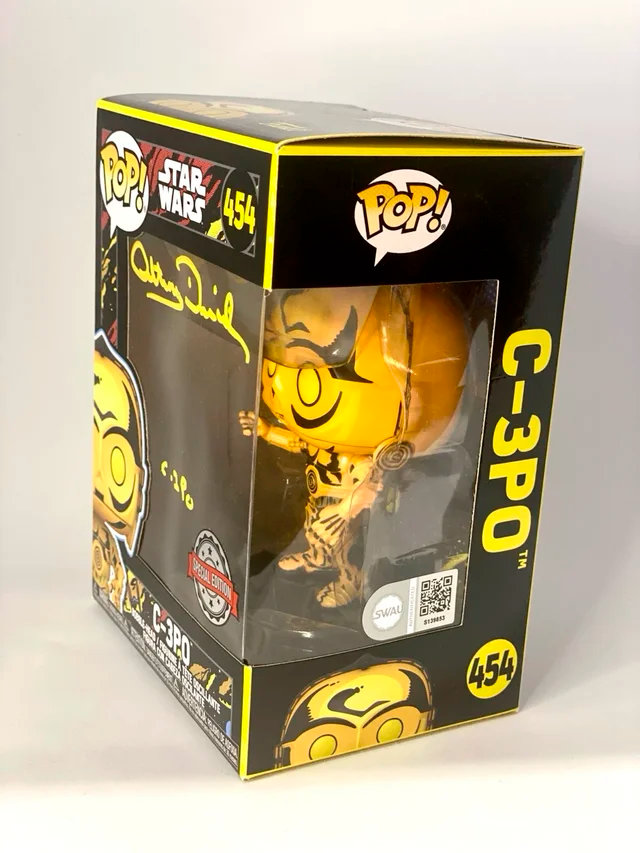 Funko Pop C3PO #454 - Star Wars firmado por Anthony Daniels, Edición Especial, con certificado de autenticidad de SWAU, obtenido en la misma Comic Con donde se obtuvo la firma. La firma se obtuvo en la Bruselas Comic Con en octubre de 2025. Se envía con funda protectora y muy protegido.