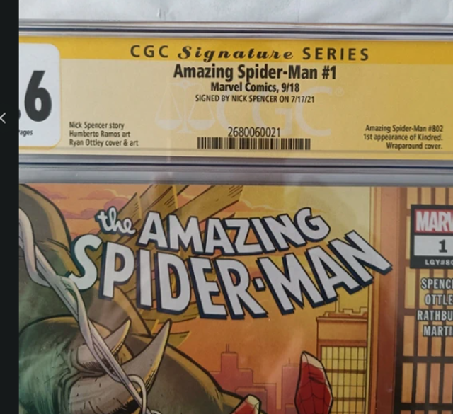 Ejemplar oficialmente certificado, con firma verificada por CGC, lo que garantiza su autenticidad y conservación a largo plazo. Corresponde al inicio de la etapa de Nick Spencer como guionista de Spider-Man, muy valorada en el coleccionismo moderno.