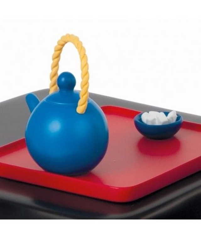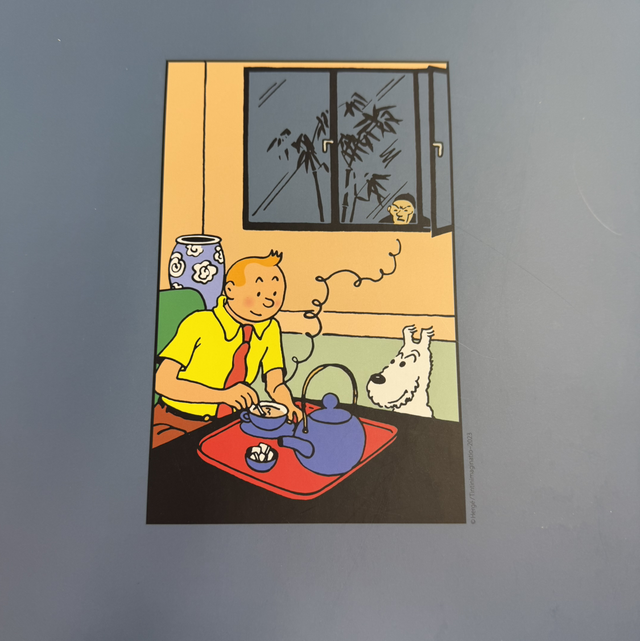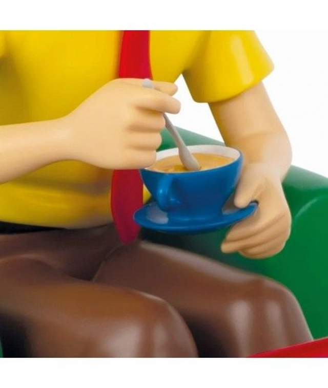Si hay una tradición ancestral en China, es el arte del té. Momento sagrado en el que Tintín se rinde ante El Loto Azul, a su llegada a Shanghái. Extraído de una viñeta de la página 9 del álbum, nos permite revivir este momento mítico de Las aventuras de Tintín, donde el héroe, sentado en un cómodo sillón verde, camisa amarilla y corbata roja, se dispone a degustar la delicada bebida que le acaban de servir, bajo la mirada interesada de Milú. Esta nueva resina de colores vivos, al igual que la anterior, ha sido diseñada con el máximo respeto por la línea de Hergé. CARACTERÍSTICAS Material: Resina Acabado: Mate Pintura policromada Pintado a mano Con certificado numerado